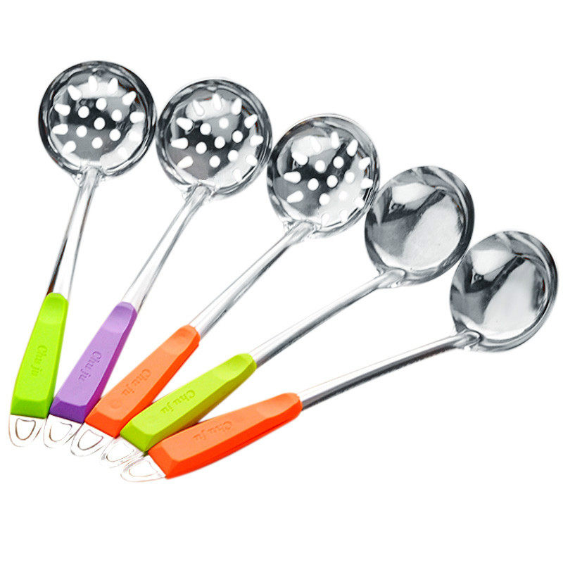 Hot pot spoon Soup spoon colander Food spoon Stainless steel kitchen cooking supplies kitchenware color thickened long handle spoon