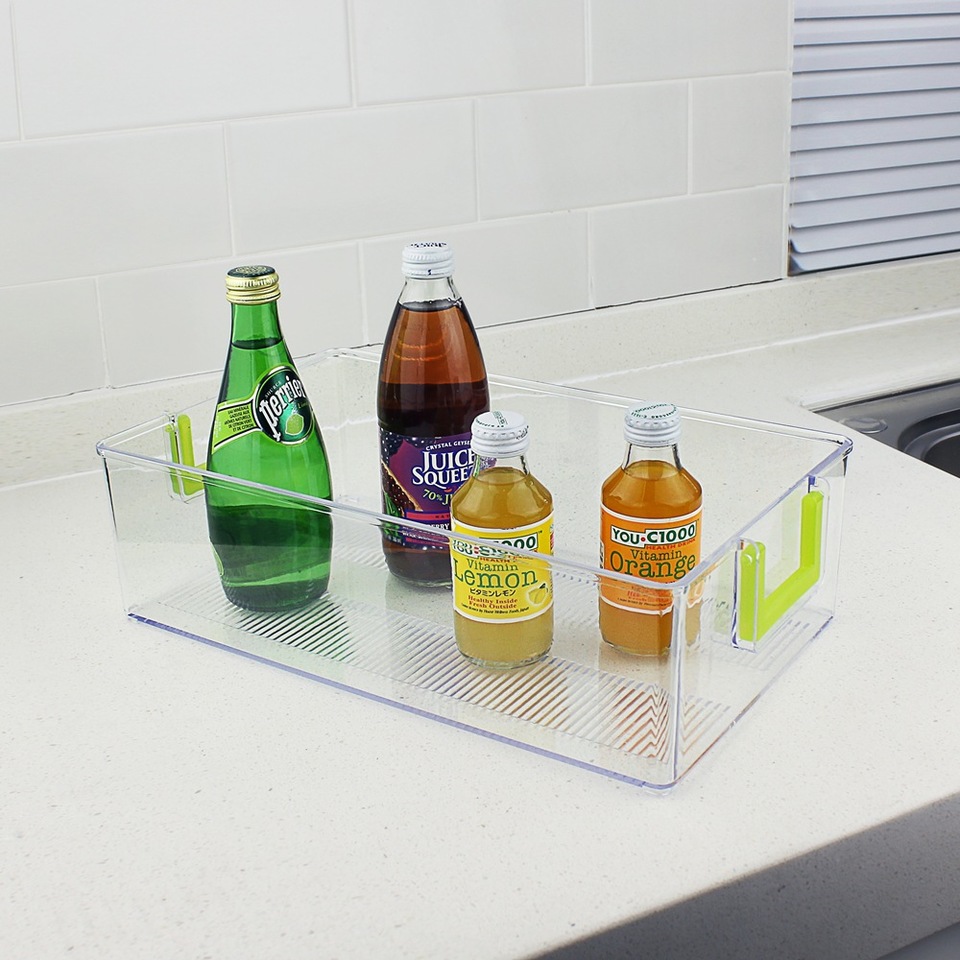 Export-grade PET plastic refrigerator handle pull-out storage box can be superimposed transparent fruit and vegetable storage storage basket