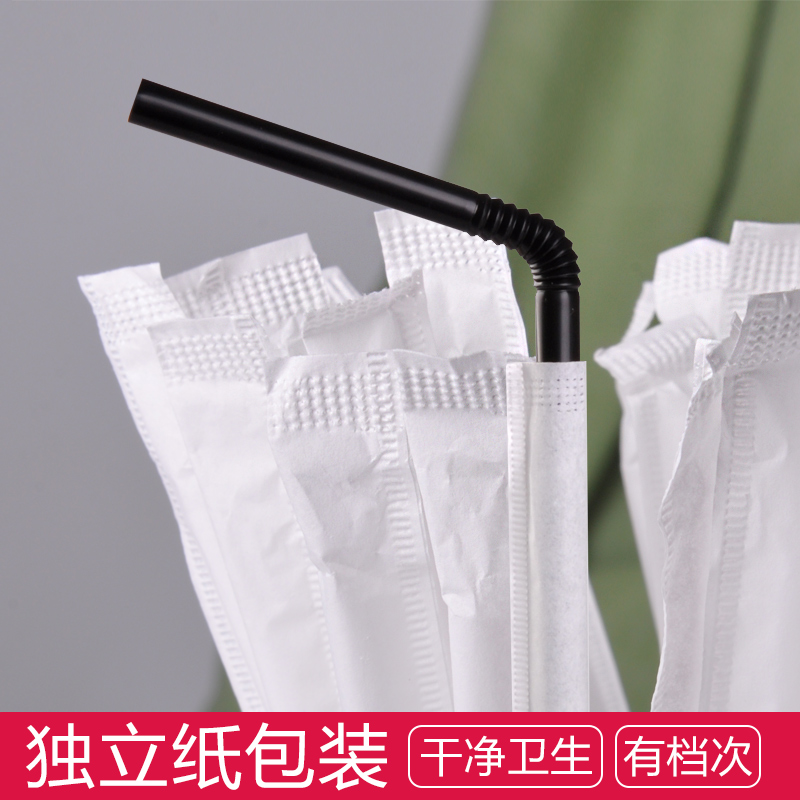 Eight thousand row elbow straw disposable independent packaging straw beverage beverage soybean milk tea straw black transparent straw
