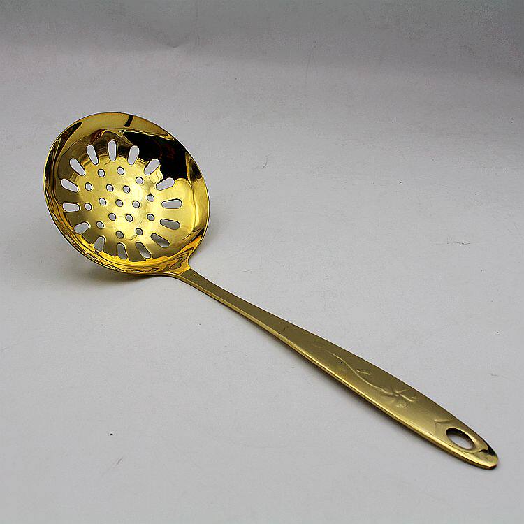 Pure Copper Thickened Cutlery Kitchen Supplies Hotel Supplies Red Copper Brass Soup Spoon Leaking Spoon Carved large leaking spoon No coating