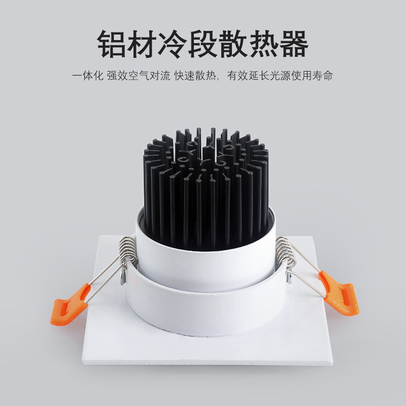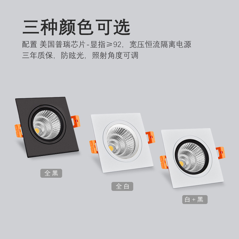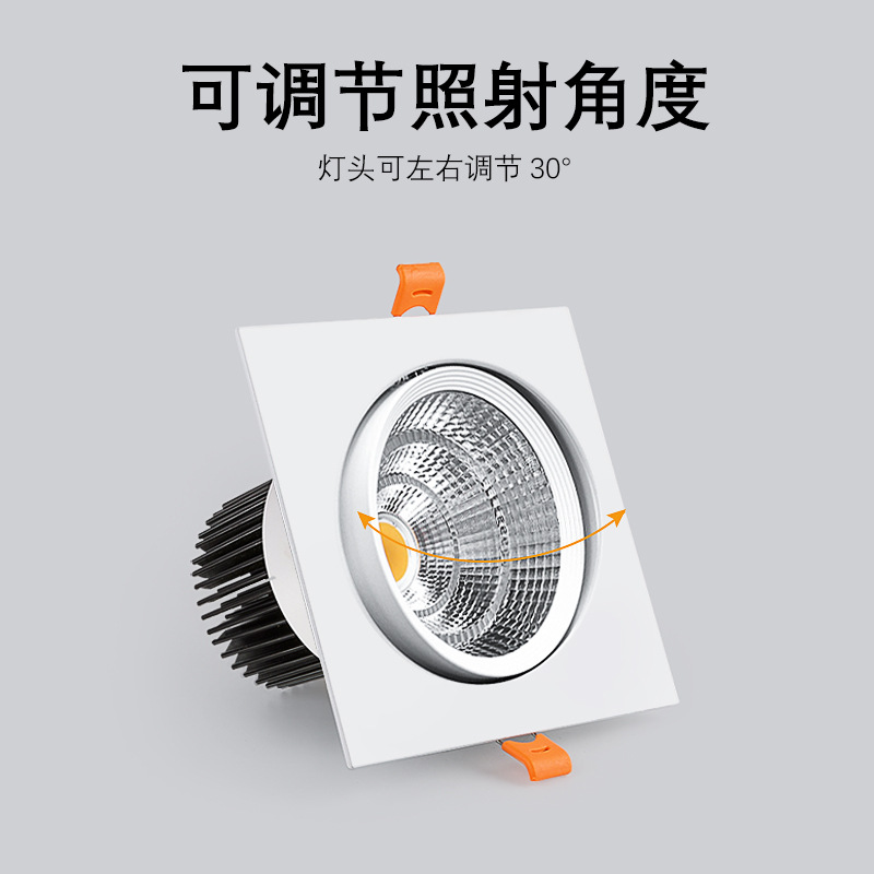 Single head square spotlight cob embedded LED ceiling light grid light bucket bean bile lamp adjustable angle manufacturer straight for