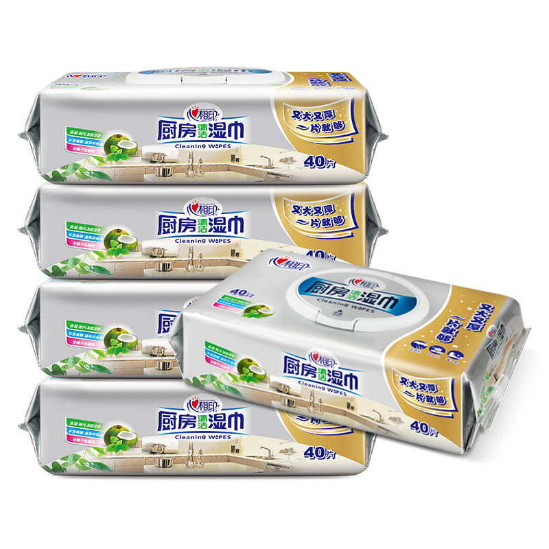 Heart Print Kitchen Wipes 5 Packs 200 Heart Print Hygiene Clean Degreasing and Deteriorization Deteriorating