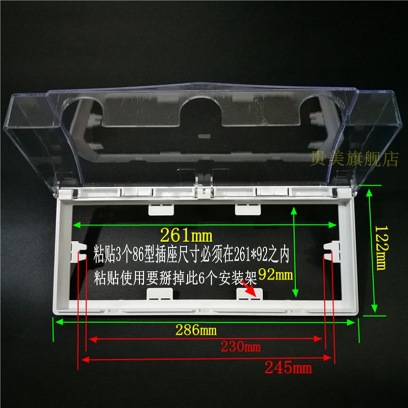Self-adhesive powder room kitchen 86 type paste socket cover bathroom one-piece three 3-bit waterproof box transparent splash-proof water box