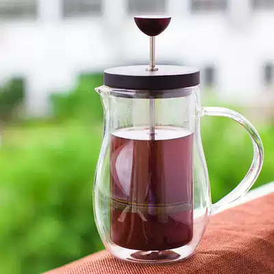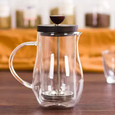 Double glass French filter press pot French filter coffee pot mahogany cover tea brewer home Hand Brewing teapot