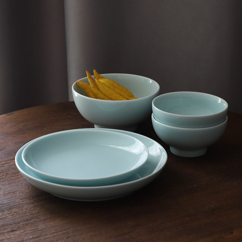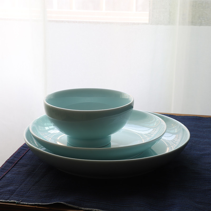 Shanshui a Jingdezhen ceramic tableware rice bowl soup bowl thick 7 inch 9 inch pan shadow green can be placed in the dishwasher