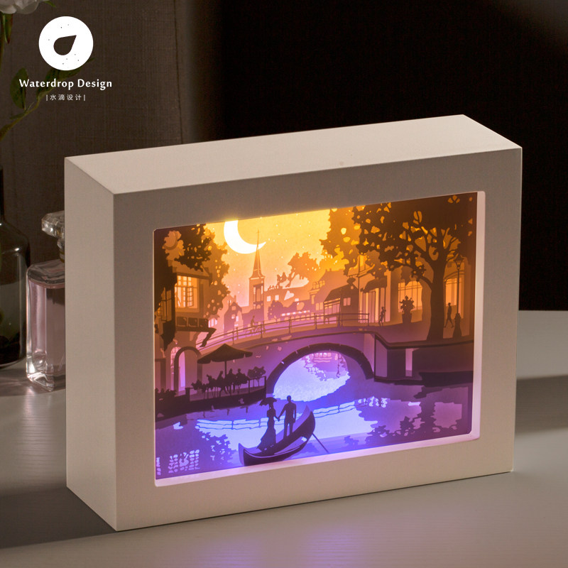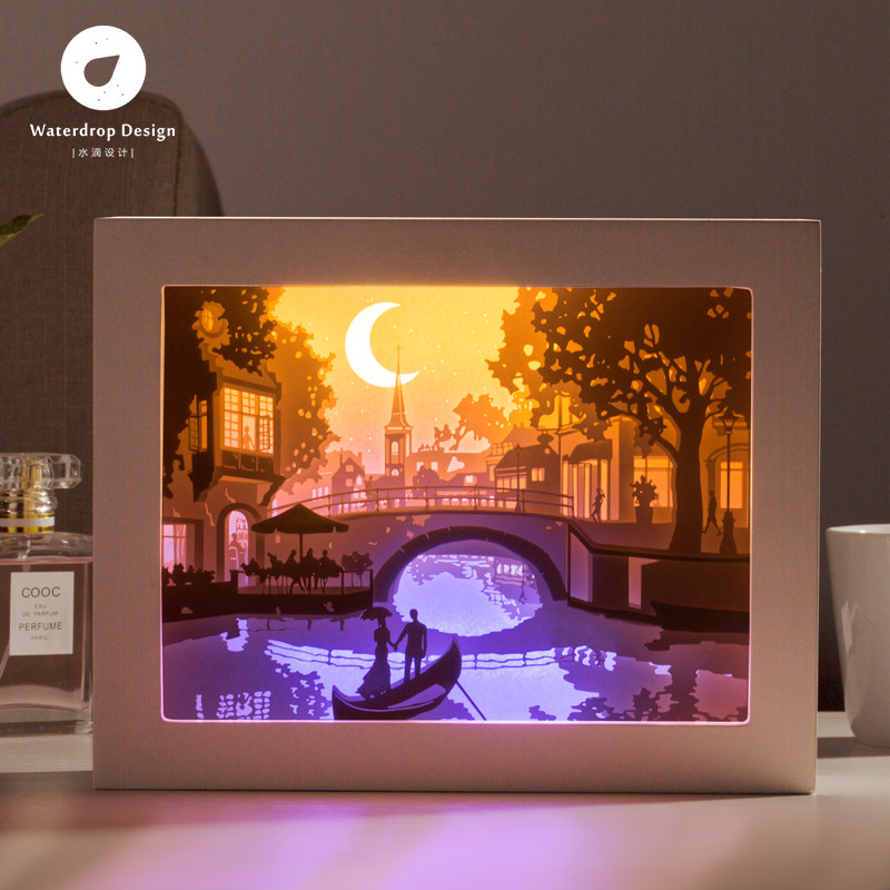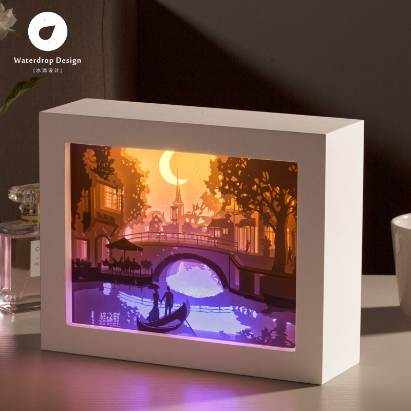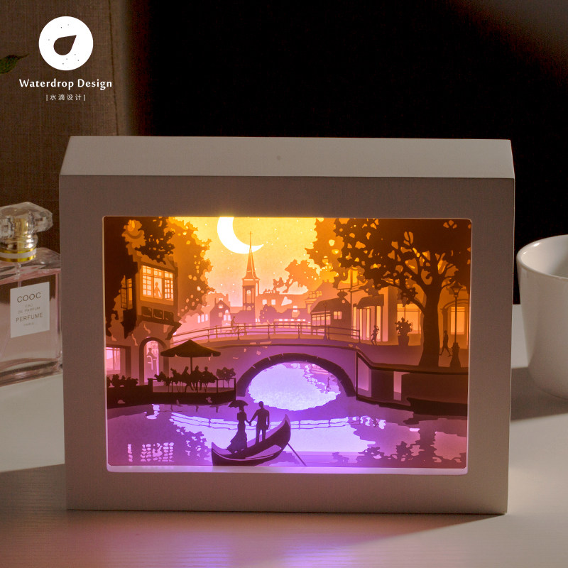 Light and shadow paper carving lamp bridge paper-cut carving 3diy handmade material package creative gift Three-dimensional shaking sound with the same table lamp