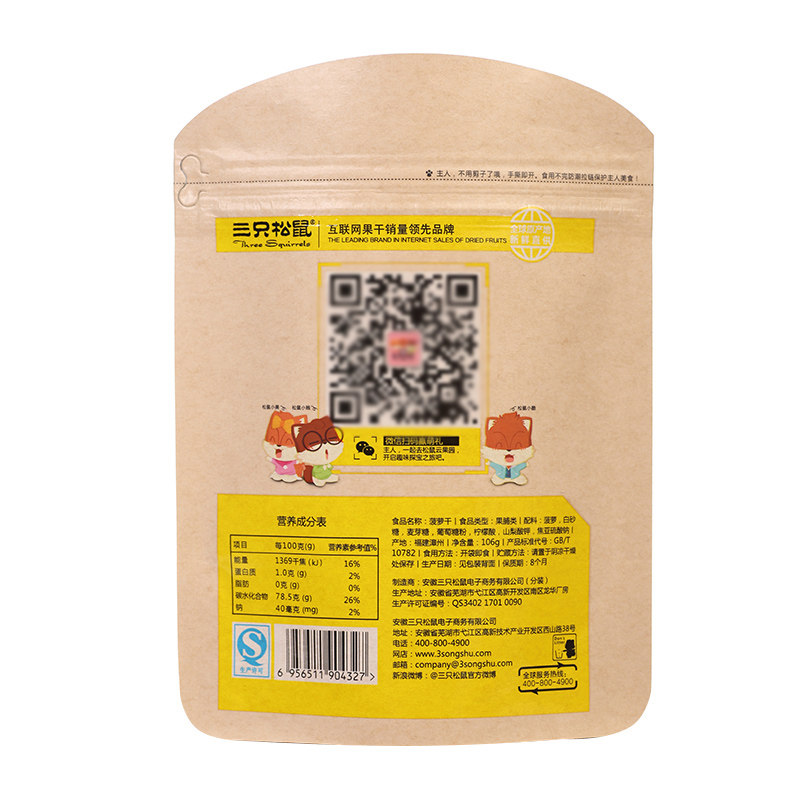 Three squirrels dried pineapple 106g dried fresh fruit candied fruit dried pineapple slices leisure fruit slices snacks