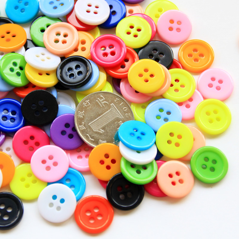 Kindergarten handmade DIY making material Candy Color resin Four-eye button Adhesive Painting Plastic