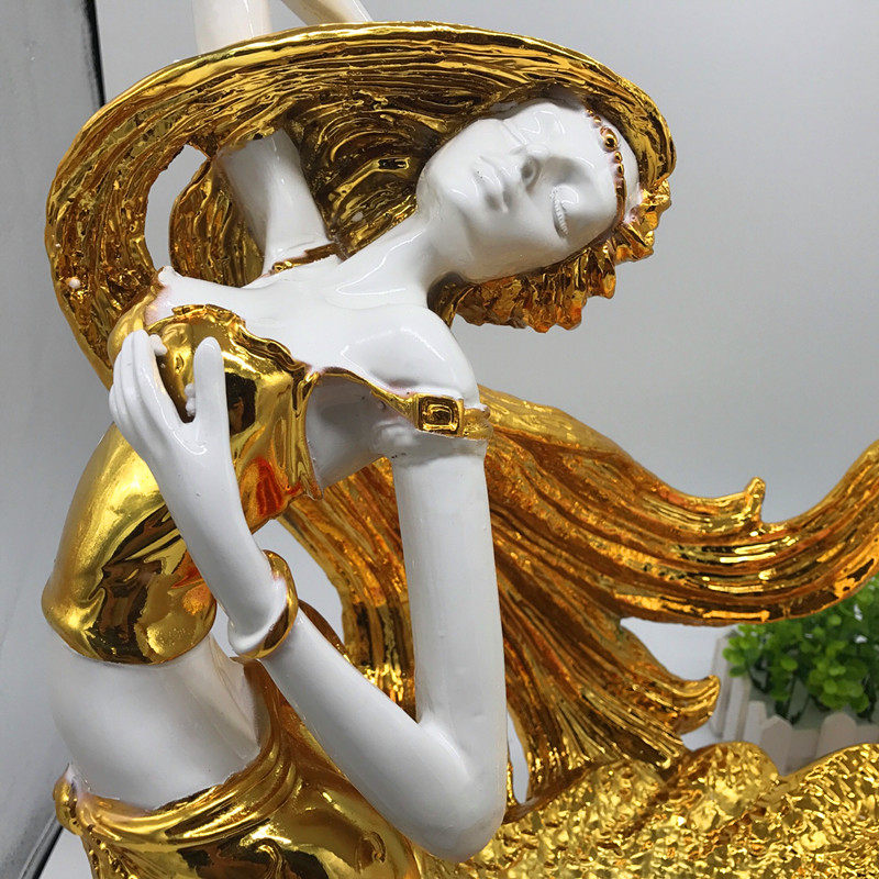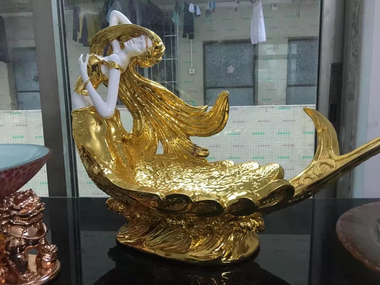 Golden Mermaid Silver Mermaid (65 * 34 * 50cm) Sexy Beauties White Fruit Pan Gold Mermaid White Pearl Dish
