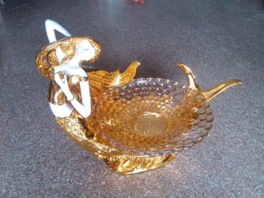 New Eurostyle Plated Gold Mermaid Fruit Pan Creative Art Sashimi Disc Adornment Ktv Hotel Swing