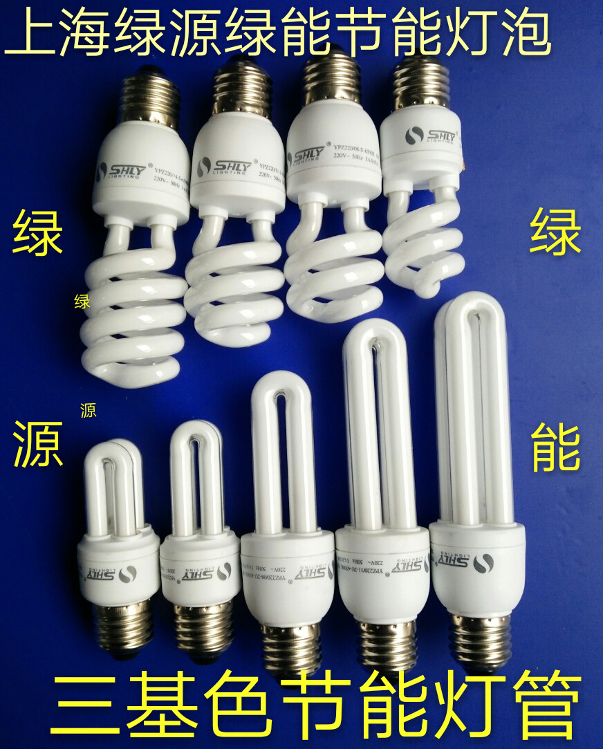 Energy-saving light bulb 2U5W 8W 11W 13w white warm light energy-saving lamp Shanghai Green source green energy three-color bulb