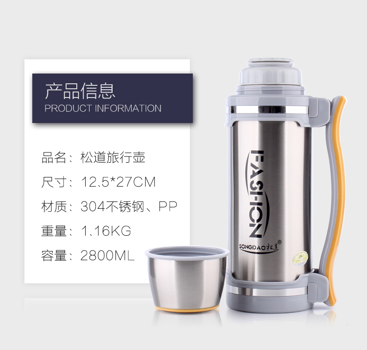 Pine Road Vehicular Stainless Steel Insulated Kettle Outdoor Heating Pot Home Large Capacity Travel Insulated Cup Men's Kettle 2 8L