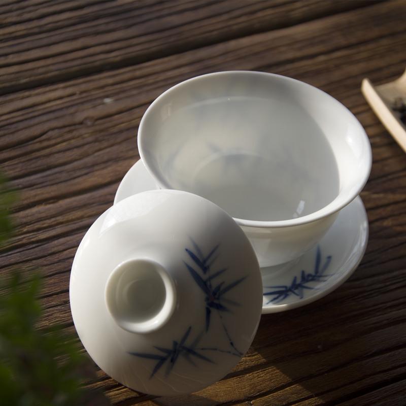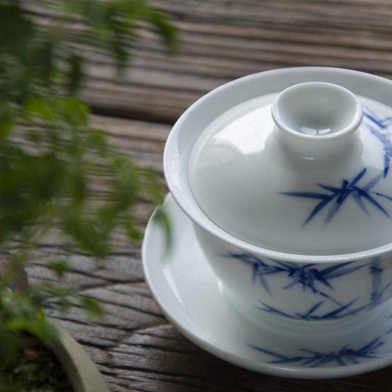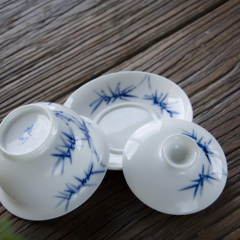 Tea Mifang Jingdezhen Qingzang Porcelain Bamboo Cover Bowl Glaze Lower Color Pure Hand Painted three-only Bowl Kung Fu Tea Furniture