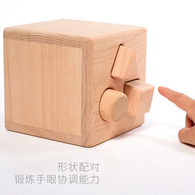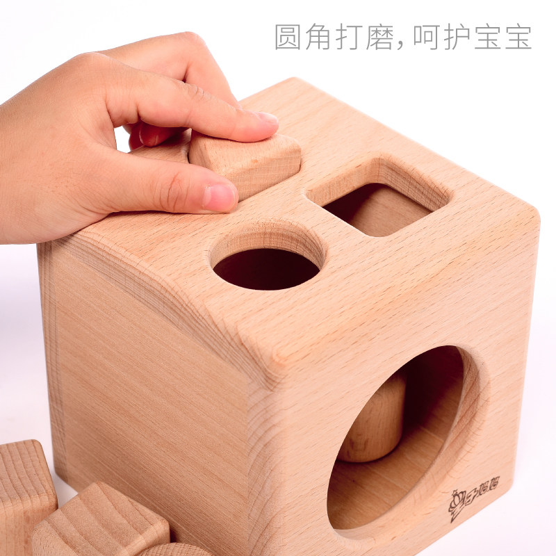 Imported beech geometric shape cognitive matching box 123-year-old baby early education enlightenment gift Solid wood without paint