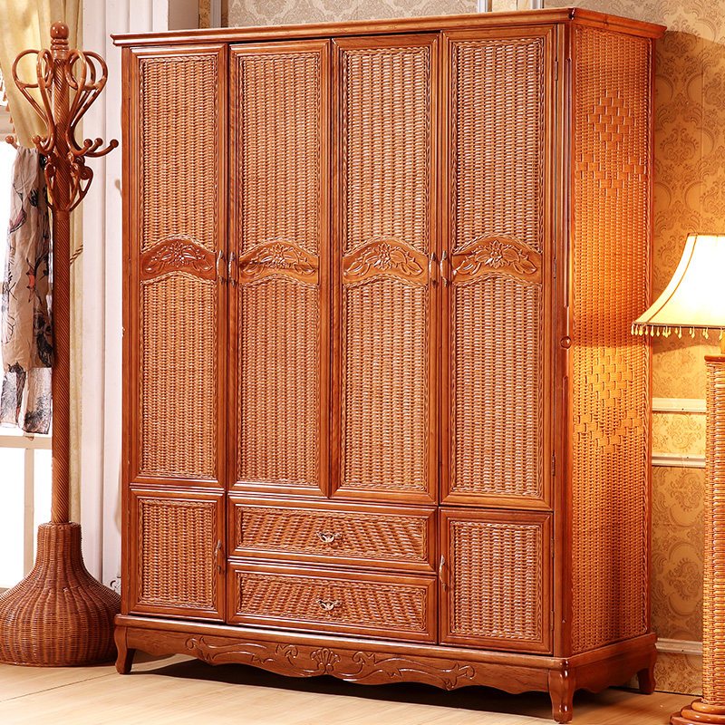 Rattan Furniture Real Rattan Wardrobe Rattan Four Door Wardrobe Sliding Door Wardrobe Two Door Rattan Wardrobe
