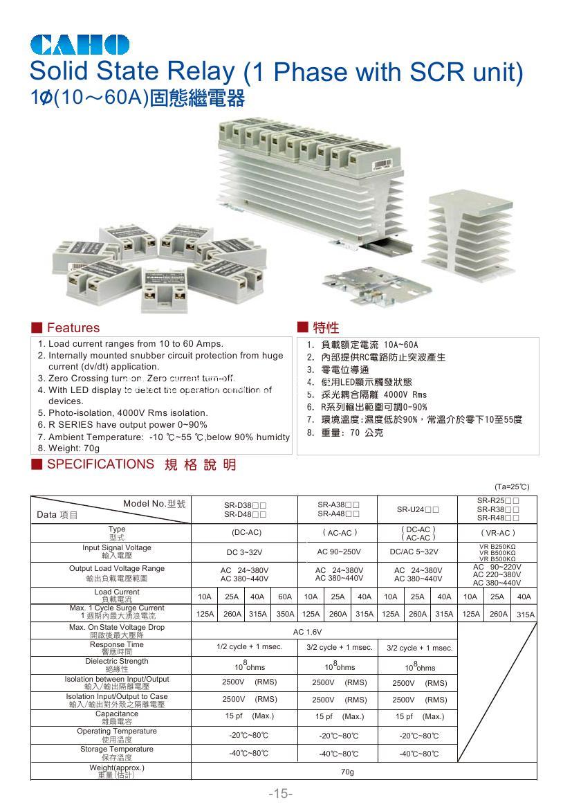 Taiwan Xuanrong CAHO SR-R2540 SR-R3840 SSR40A single-phase adjustable solid state relay