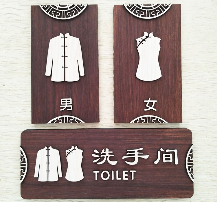 Customized wooden toilet signs high-end men's and women's toilets toilet house number custom creative wooden sign