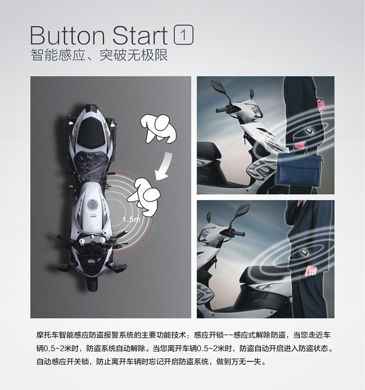 Lei Zhenzi motorcycle scooter one-button start intelligent induction anti-theft alarm ghost fire modified automatic lock