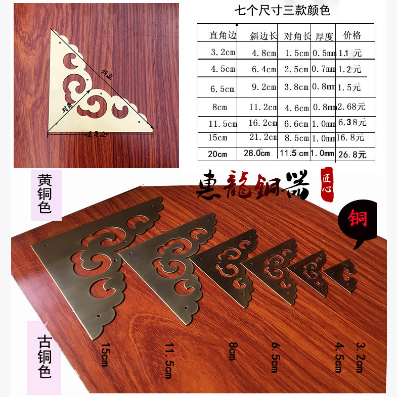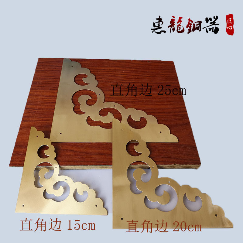 Chinese decoration Pure copper corner cabinet door drawer box Jewelry box Edge antique door decorative corner flower Xiangyun bag