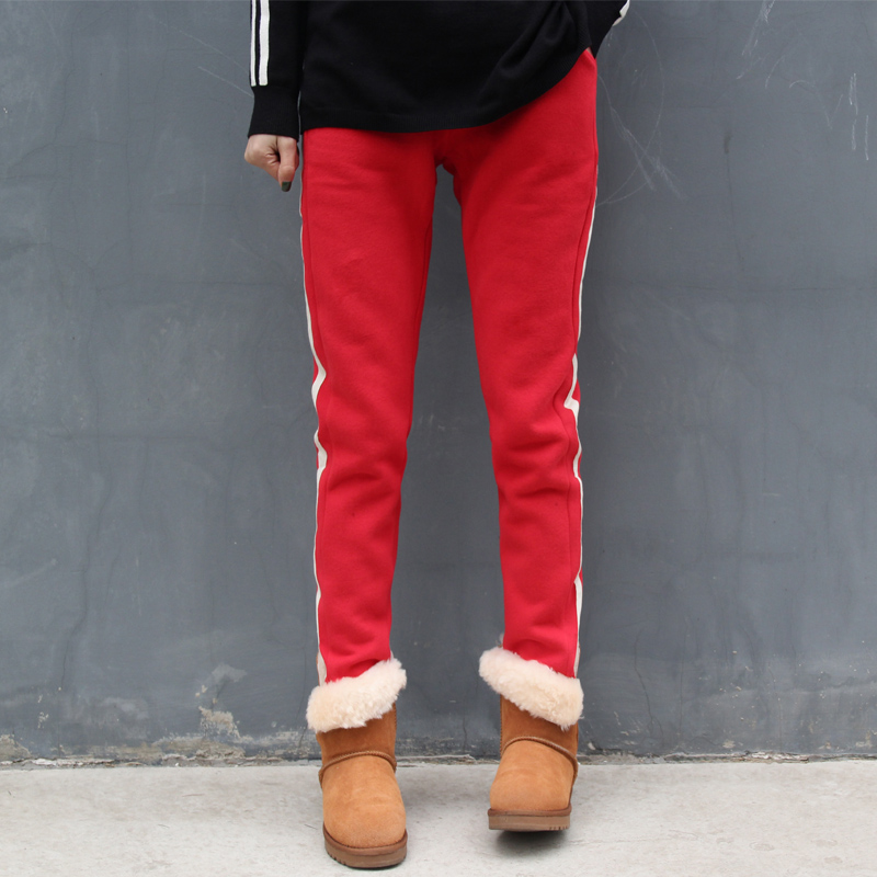 Real Son Beauty Dressing Social Striped Plus Suede Thickened Sports Thick Cotton Pants Loose slim Slim Foot Casual Pants Women Harun Pants Cotton Pants