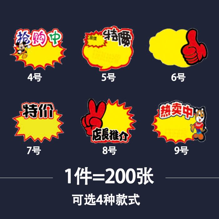 Blast Sticker Small Number Mini Blast Sign Mobile Phone Price Tag Boutique Snack Offer Price Sign POP Advertising Paper