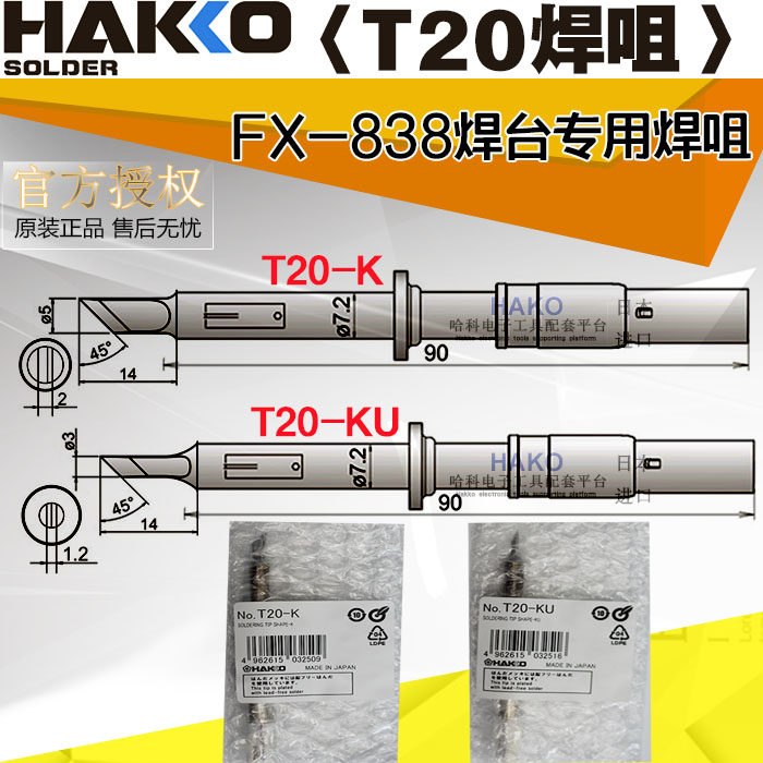 HAKKO Japan White Light T20-K T20-KU Soldering Iron Head Soldering Tip FX-838 Soldering Station FX8301