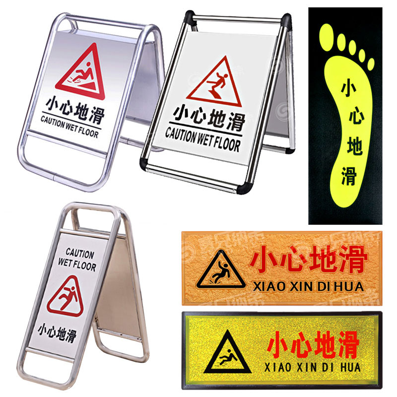 Slide carefully, do not park, do not allow parking, special parking spaces, careful steps, pay attention to safety, cleaning and hygiene, suspension of use, maintenance, suspension of service, blank stainless steel folding, careful use of stainless steel folding, careful use of stainless steel folding,