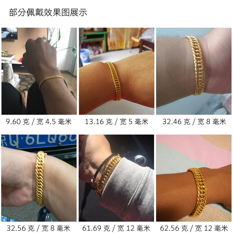 Gold edge gold bracelet women's foot gold 999 whip chain male and female models gold bracelet jewelry staging