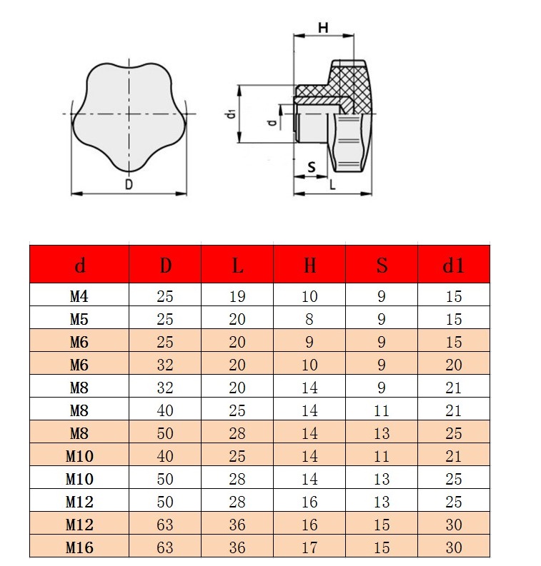 Five-star handle inner tooth plum gummed screw nut hand screw nut M4 M5 M5 M8 M10 M10 M12 M14 M14 M16 M16