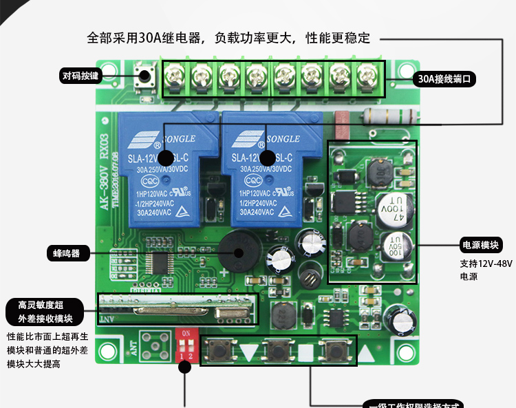 Wireless 4000 meters 12V-24V-36V-48V DC motor two high-power forward and reverse 30A remote control switch