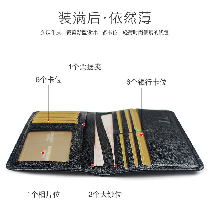 Wallet Men's version of men's wallet ultra-thin wallet Men's long version of thin wallet Bull Leather Soft Youth Hands with wallet