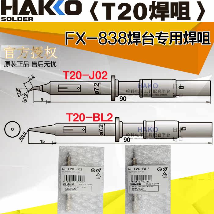 HAKKO Japan white light T20-J02 T20-BL2 branded iron head welding tip FX-838 welding table FX8301