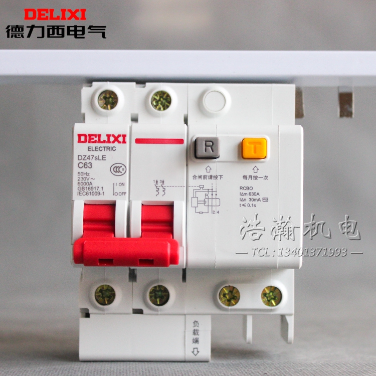 Delixi DZ47LE leakage circuit breaker 2P N open 63A copper busbar 1 meter connection copper wiring busbar