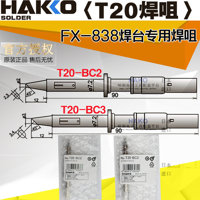 HAKKO Japan white light T20-BC2 T20-BC3 branded iron head welding tip FX-838 welding table FX8301