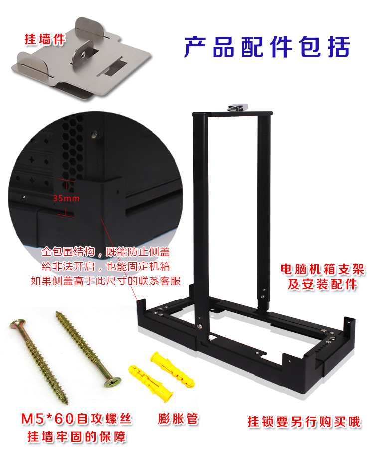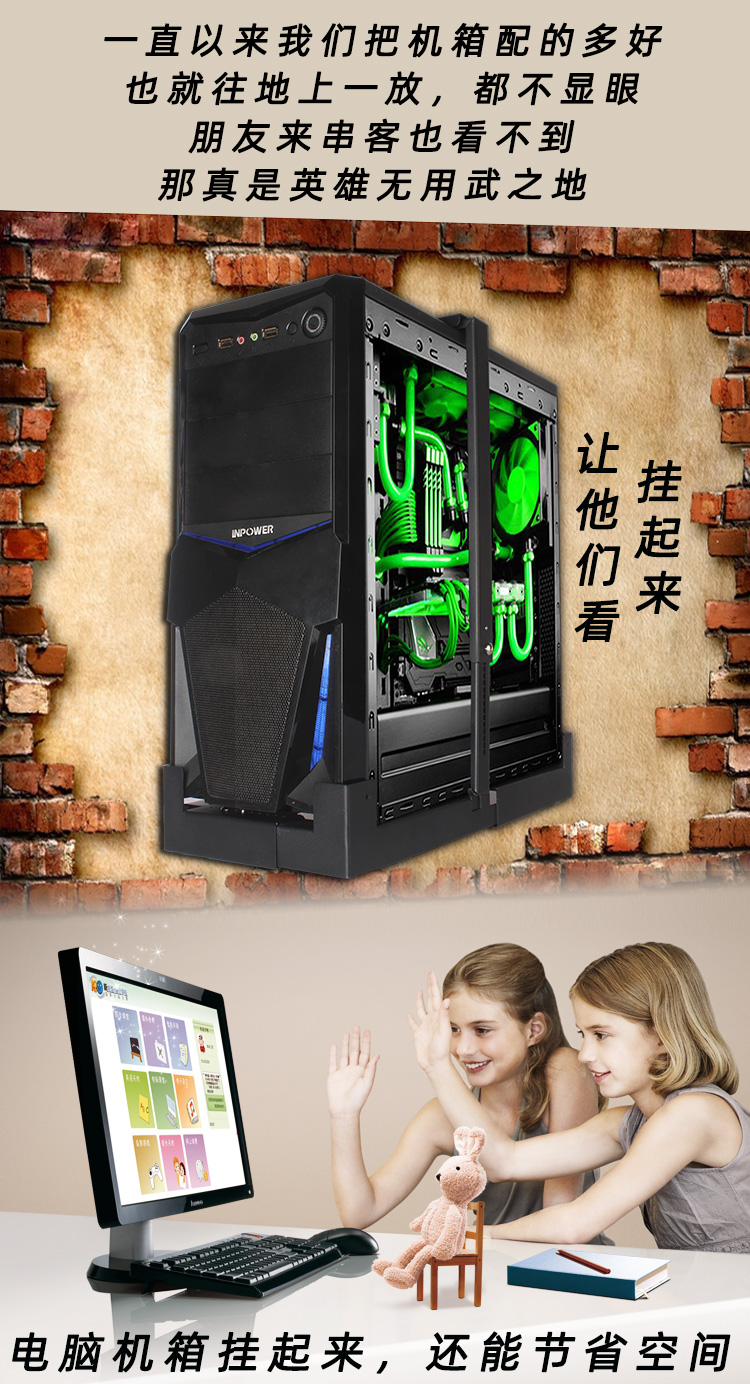 Computer mainframe tray Large mainframe tray Computer wall bracket Desktop mainframe raised wall hanging suspension Anti-theft