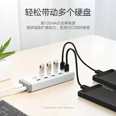 Green union 10-port USB expander 7-port hub set extension cable with power notebook desktop computer USB splitter 3 0 high-speed USB converter 2 0 extension multi-interface expansion charging port