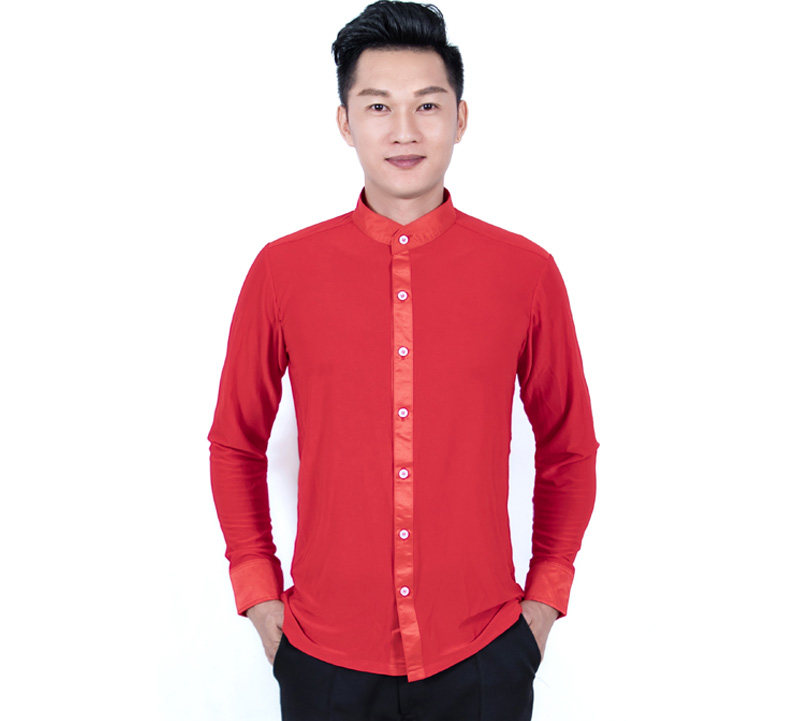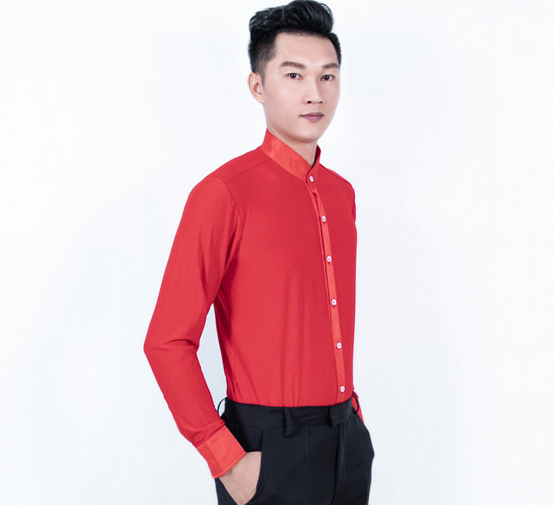 Male Adult Long Sleeve Latin Dance Morden Dance Social Dance Costume Contest for Performance Costume National Mark Dance blouses