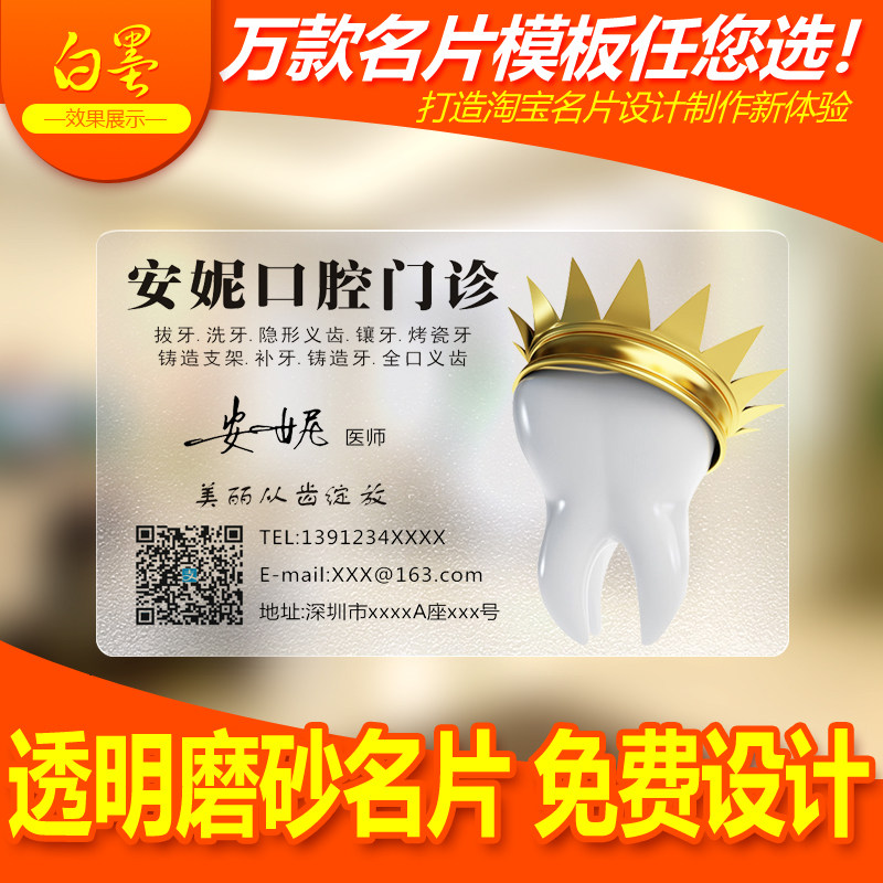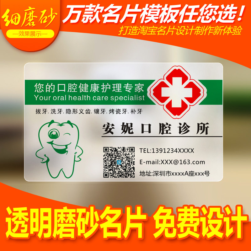 PVC business card transparent dental business card design and production of dental outpatient dental beauty care business card
