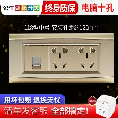 Bull switch socket 118 type three-position wall socket panel porous wall household two-position five-hole computer gold