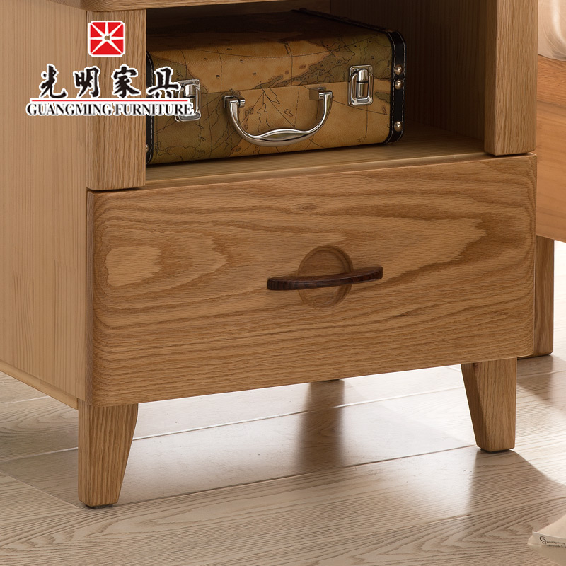Bright furniture red oak solid wood bedside table Nordic minimalist bedside cabinet locker log color storage cabinet
