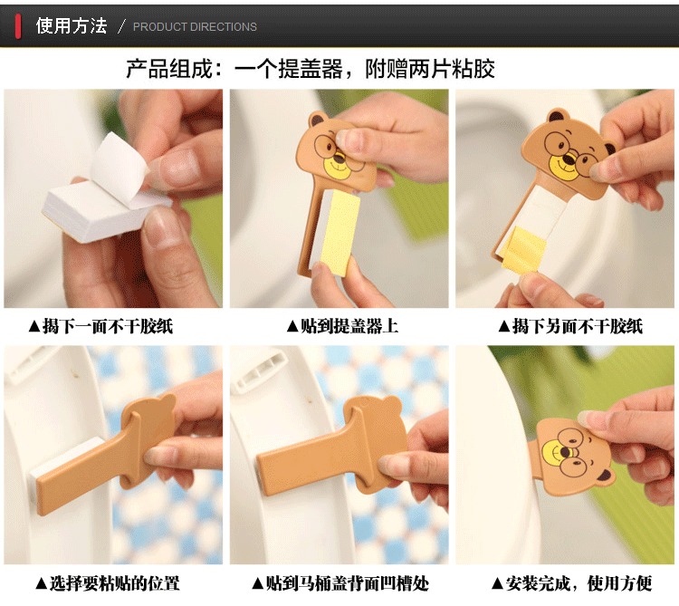(Buy 1 round of 4) Cartoon toilet cover lifter portable toilet ring handle toilet handle cover flipper