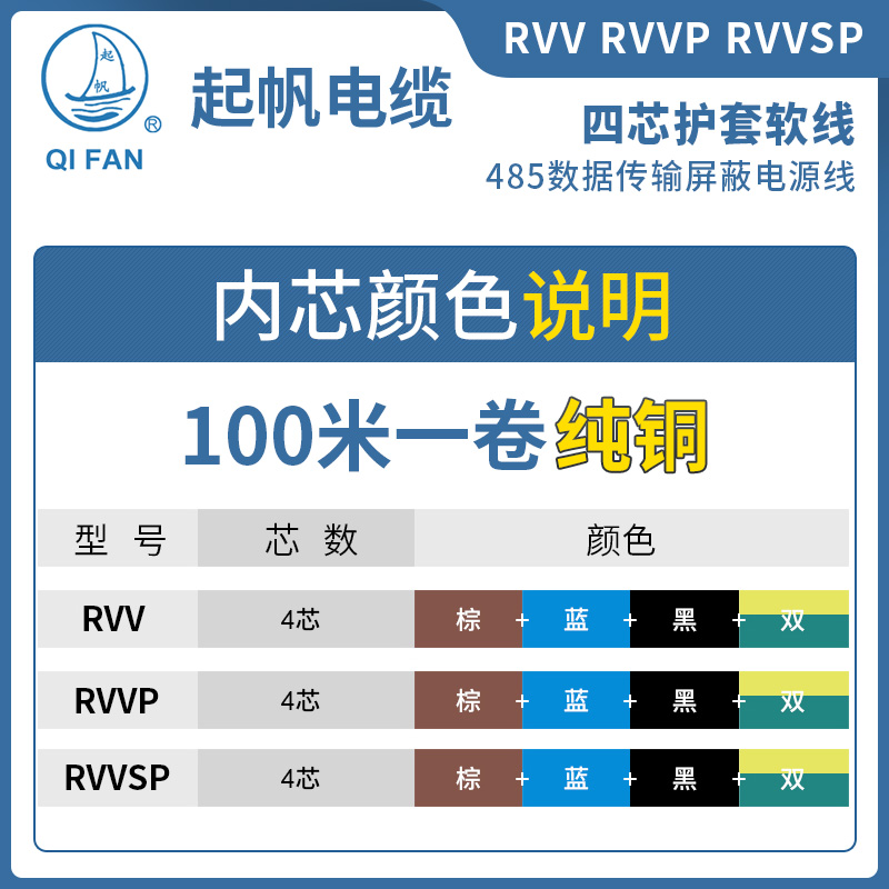 Sail cable RVV RVVP TRVV4x0 5 0 75 1 1 5 2 5 6 square four-core soft sheathed wire