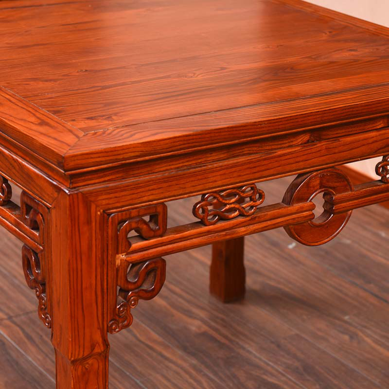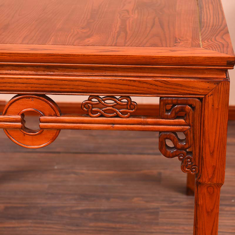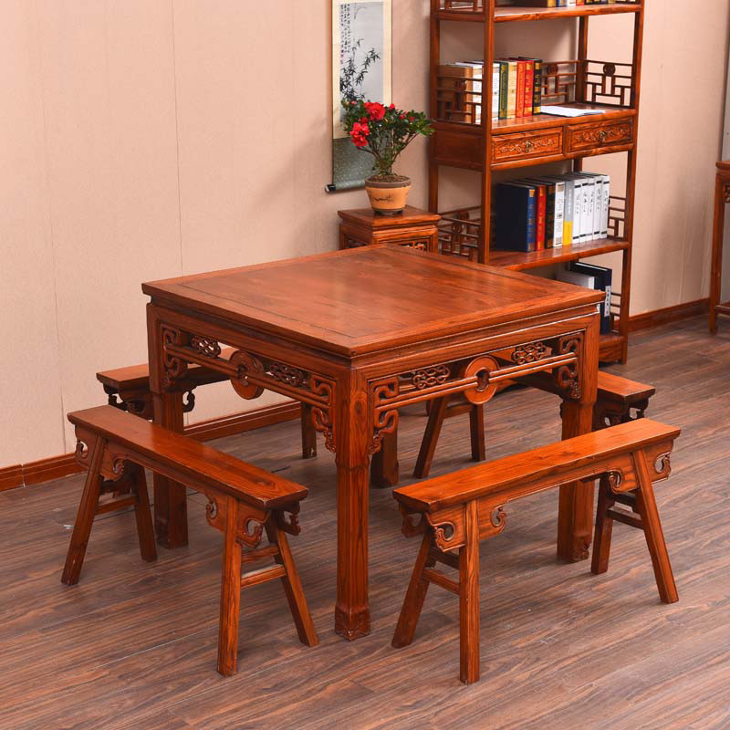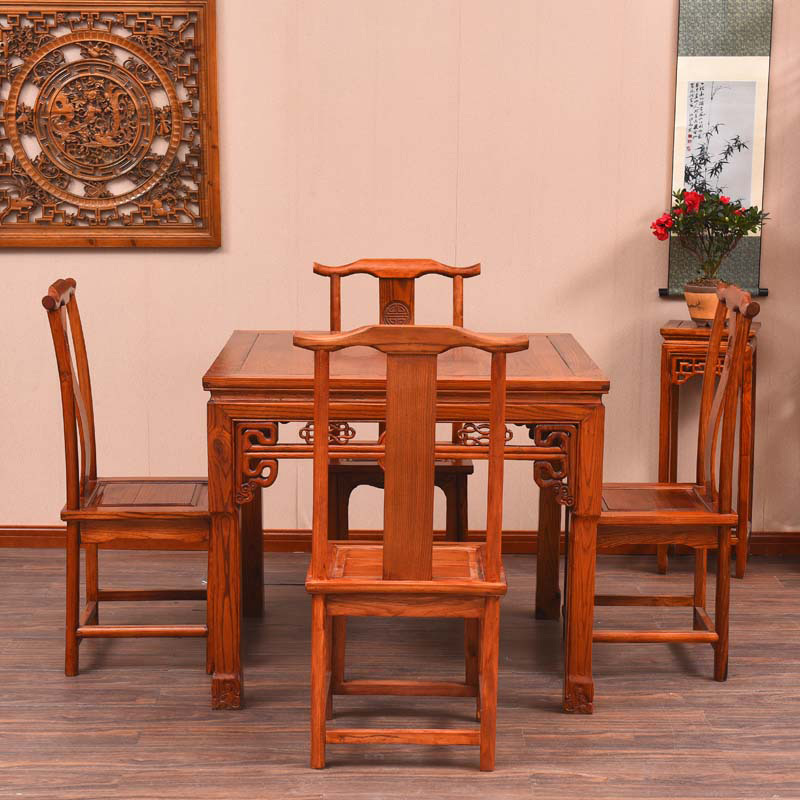 Pleasant Family Tribe Solid Wood Dining Table And Chairs Combine Ming and Qing Antique Chinese Vintage South Elm Wood Bronze Money Octaxian Square Table