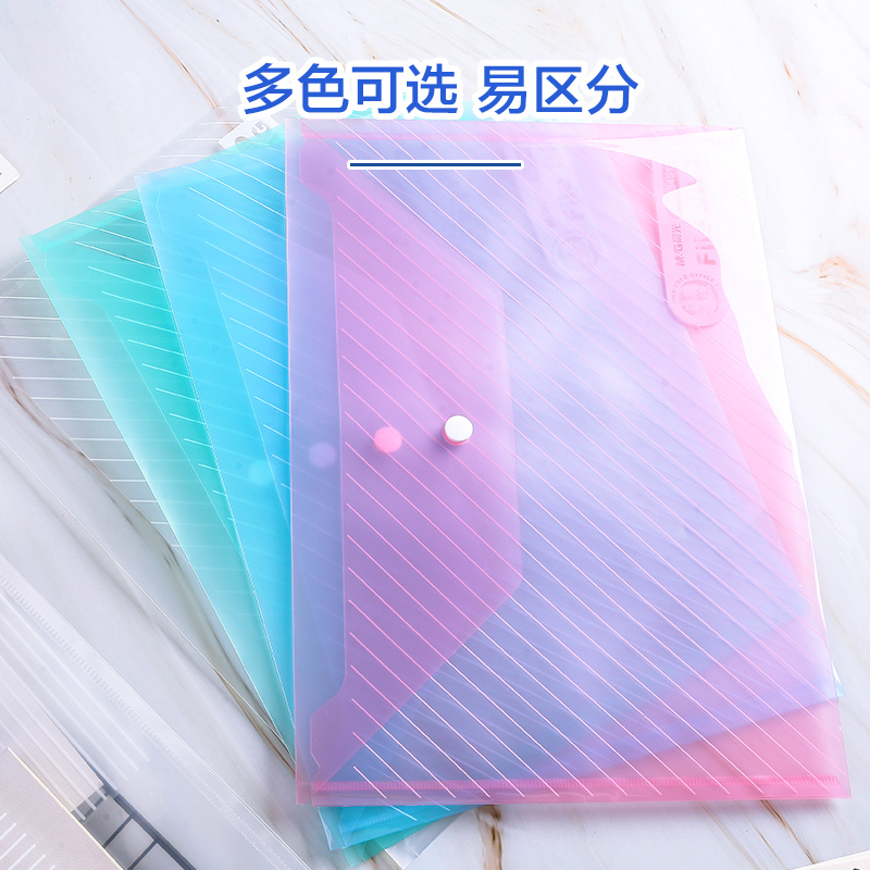 Morning light stationery button bag Document bag A4 transparent thickened waterproof large capacity labor-saving student paper certificate induction Office data contract classification archive Multi-function storage and finishing bag