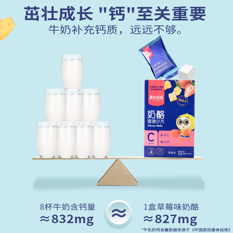 Guoxian multidimensional cheese calcium cube dissolved Doudou snacks Children's cheese 18g Banana Blueberry strawberry Yellow Peach original flavor