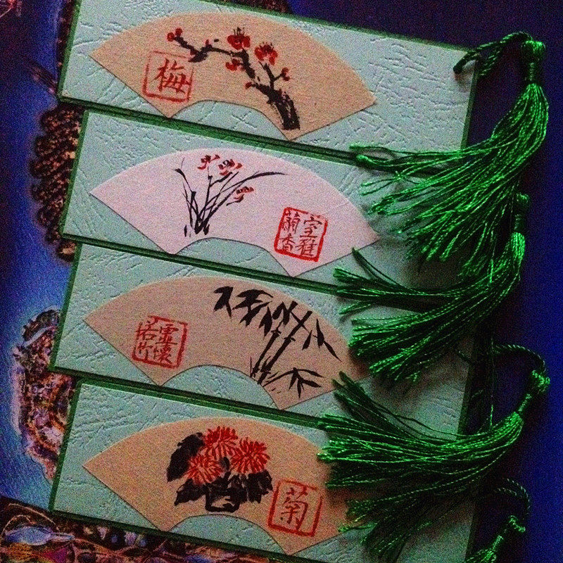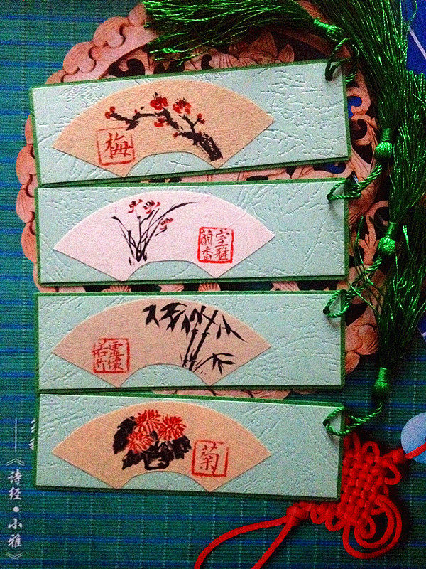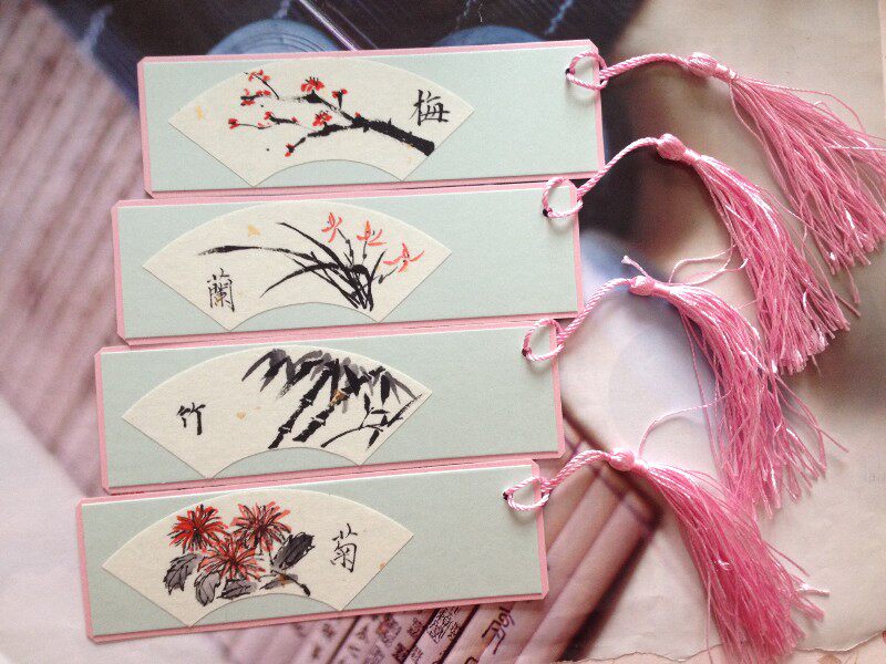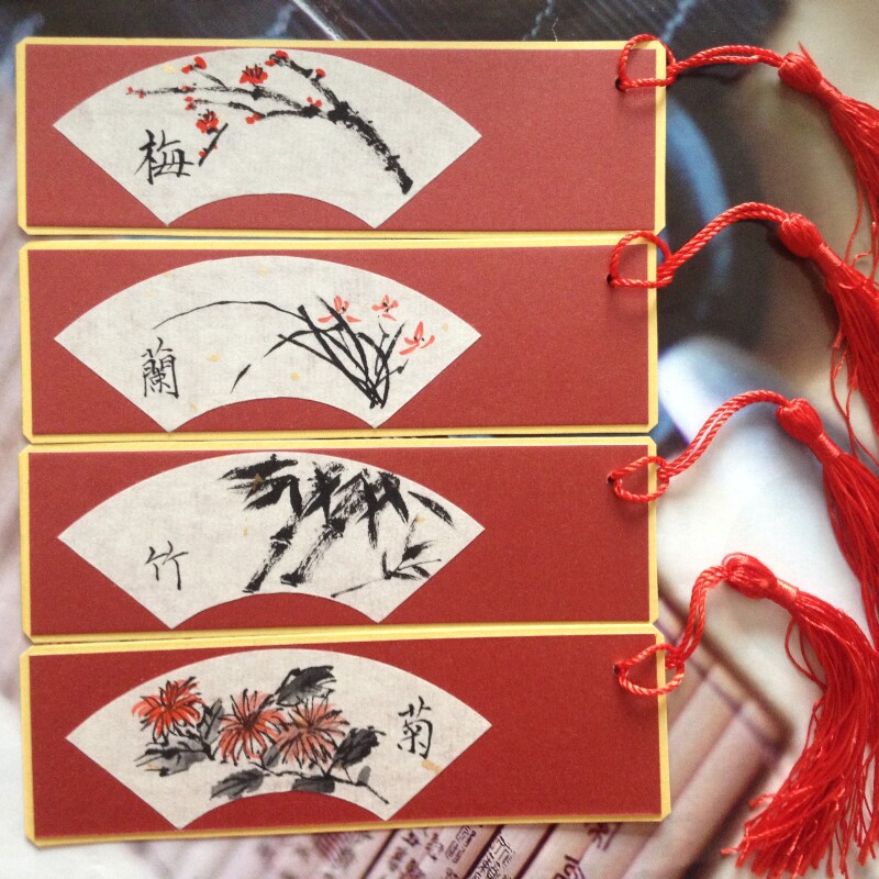 China Wind Mei Lanzhu Chrysanthemum Fan Face Bookmark Imitation Ancient Flow Su China Knot Hand-painted original full 30