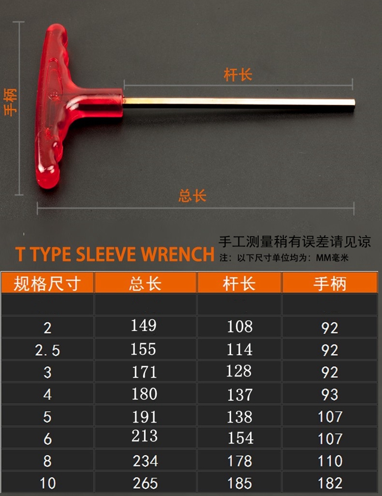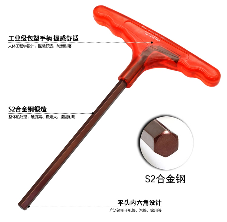 German hardness high S2 material inner hexagon wrench Single T type hexagonal wrench hexagonal spoon 1 5-10mm wrench