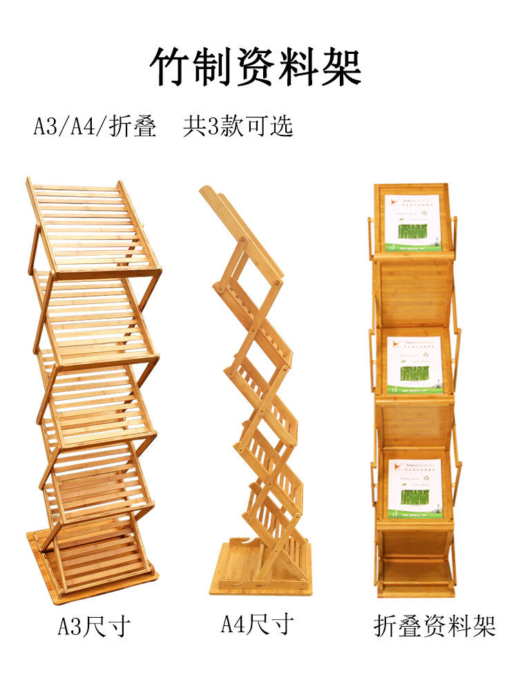 Bamboo materials frame on display shelves wooden A4 painting page poster hotel front desk brochure