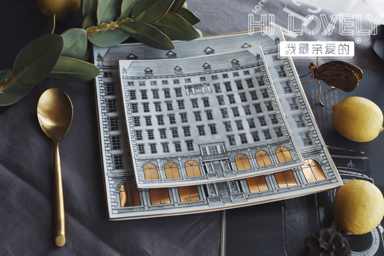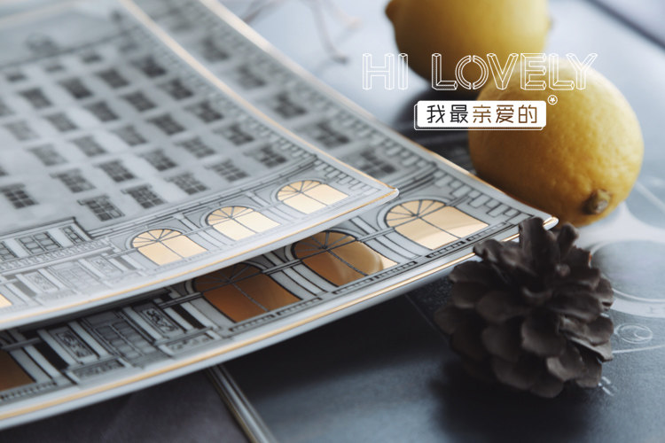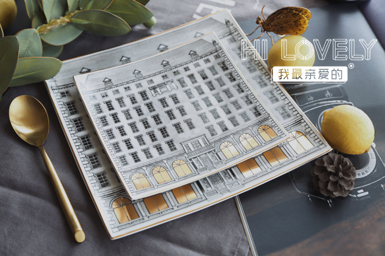 Lovely Life is full of ritual self-retention high-end tracing real gold square building inventory heart plate decorative plate