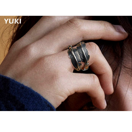 YUKI men's index finger ring ring 925 silver jewelry personality retro feather Thai silver ring children send boys gifts